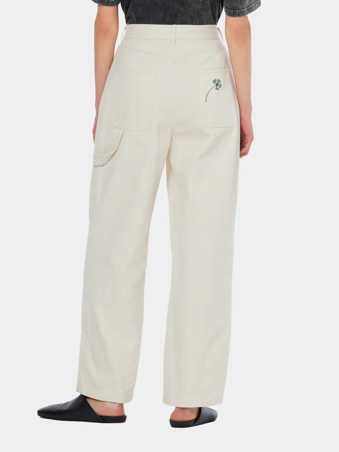 These high rise, wide leg jeans showcase unique tall grass embroidery. A nod to nature, they bring a rustic yet refined style to any high-waisted denim collection.