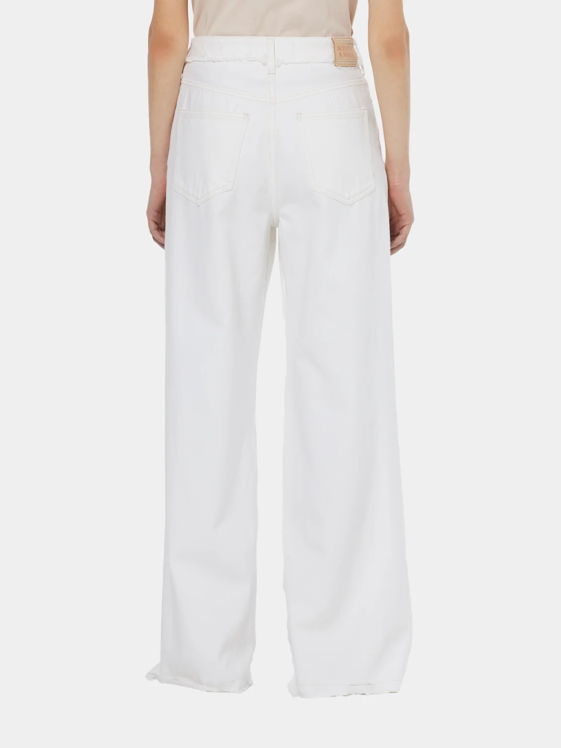 Step into the eternal charm of wide leg jeans. The faded white hue and high waist create a versatile, figure-flattering foundation for any relaxed outfit.